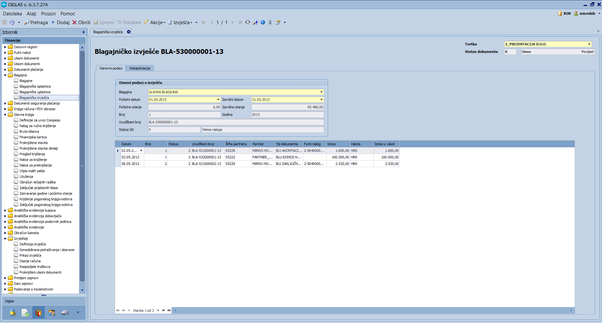 Diglas Treasury enables the administration and recoding of treasury transactions. At the level of the enterprise it is possible to administer a number of HRK and/or foreign exchange treasuries.