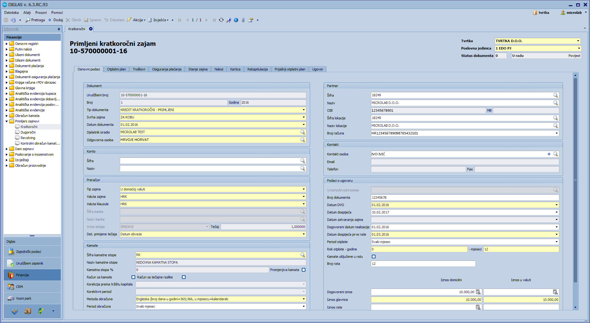 Diglas Loans enables the recording and processing of various types of approved and received loans by enterprises in domestic or foreign currency, with or without a currency clause.