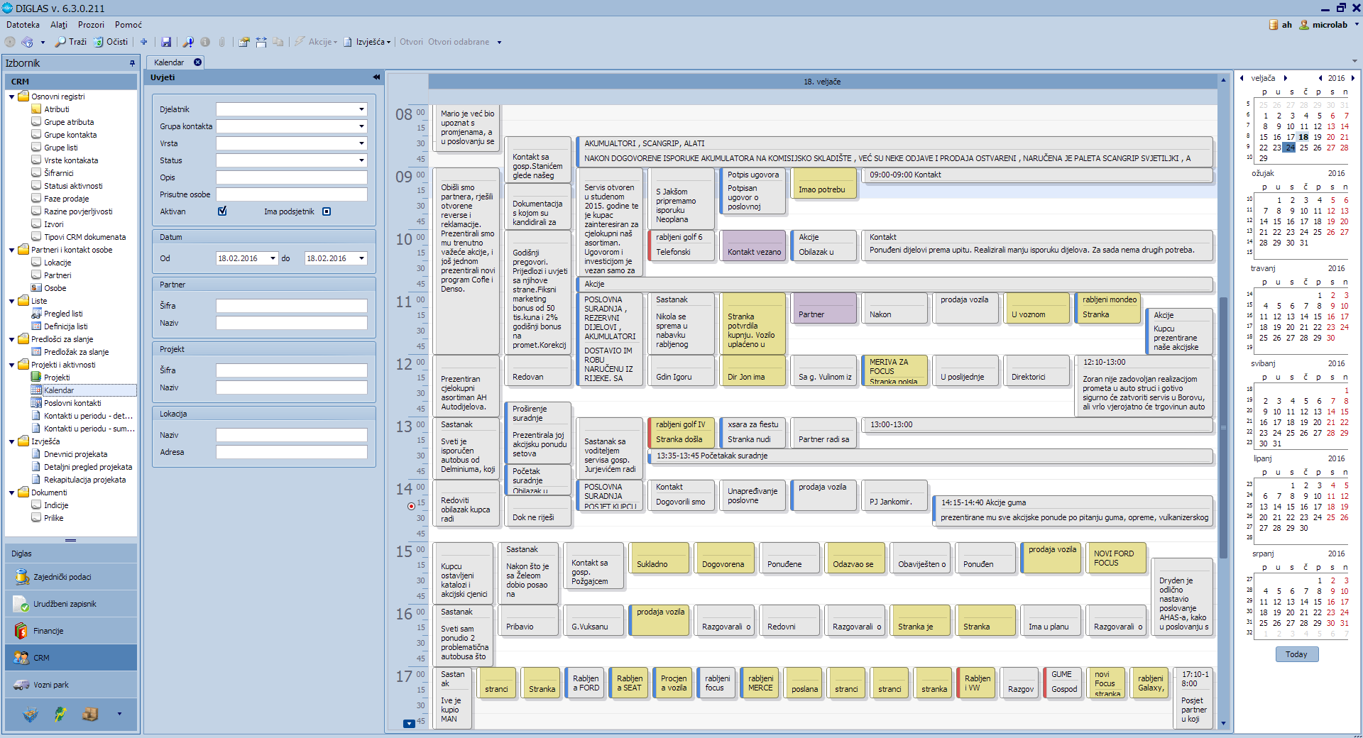 Diglas CRM (Customer Relationship Management) is a module for managing relationships with buyers and can be used independently or within the framework of Diglas ERP as an integral solution. The module enables the storing of comprehensive information on buyers, locations, contact persons and contacts (activities toward buyers) and autonomous defining of attributes according to which relationships with buyers are monitored and maintained.